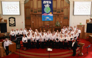 The Rev Brian Gibson (Minister of Railway Street Presbyterian Church) welcomed the large congregation and gave a special welcome to distinguished guests that included Lisburn Mayor, Councillor Ronnie Crawford, Lagan Valley MP Jeffrey Donaldson MLA, The Rt Rev Stafford Carson (Presbyterian Moderator) and the Rev Donald Ker (Methodist President). The Rev Dr Bert Tosh (Senior Producer of Religious Programmes, BBC Northern Ireland), who compered the evening, added his great wealth of knowledge on the history of churches as he showed a powerpoint presentation giving a most interesting and informative overview of the book. A large choir comprising members of Lisburn city centre churches, conducted by Tom Whyte (Director of Music at First Lisburn Presbyterian Church) and accompanied by Mr Gordon Myers (Lisburn Cathedral) sang ‘Non Nobis Domine’ (Words by Rudyard Kipling, music by Roger Quilter) and ‘Come Holy Spirit’ by John W Peterson. The congregational hymns, words of which are used in the book, were ‘How lovely is Thy dwelling place’ and ‘Thine be the glory’. Dana Masters (USA) accompanied by Stephen McLoughlin, Principal of the Lisburn School of Music, sang ‘What a wonderful world’ and ‘The climb’. Noel McMaster of Bakerloo Junction concluded the evening as he sang his well-known chart topping song ‘My Lagan Softly Flowing’ and also his new song entitled ‘Lisburn Town’ which will be recorded in a few weeks time.