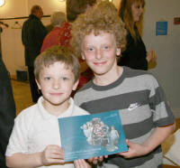 Young curly haired Curtis Dundas (right) whose instantly recognisable photo is featured on the front cover of the book is pictured with his brother Joel as he shows his signed copy of the book. Curtis and Joel are sons of the Rev Paul Dundas, Rector of Christ Church Parish, Lisburn. |