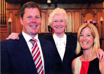 | Former member of Railway Street Presbyterian Church, the Rev Philip McConnell, with his mother Elizabeth and his wife Elaine following morning worship in the church last Sunday morning. |