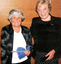Mrs. Bunty Hawkins received certificates from Lady Christine Eames, former World President of the Mothers' Union. |