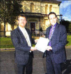 Jeffrey Donaldson MP and Councillor Paul Givan in front of Rathvarna House. US3809-143AO