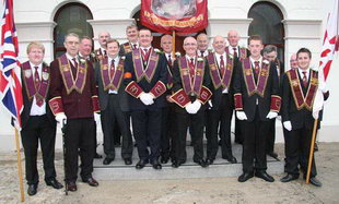 | William Hopson and a mini-bus load of Broomhedge Apprentice Boys set off on the long drive for the Relief of Derry commemorations last Saturday. | Worshipful Brother Richard Broadhurst (Sword bearer) of Broomhedge Apprentice Boys. |