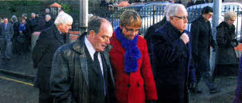 | At the funeral of Lisburn Councillor Peter O'Hagan last Sunday are L to R: Castlereagh SDLP Councillor Brian Hanvey, Lisburn SDLP Councillor Brian Heading, Lisburn Mayor Councillor Allan Ewart and South Belfast MP Dr Alasdair McDonnell MLA. | Margaret Ritchie, Minister for Social Development, SDLP South Down MP Eddie McCrady and Lisburn Councillor Bill Gardiner-Watson at the funeral of Councillor O'Hagan, |
