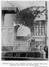 the roof over the east window the two irons still remain from which hung