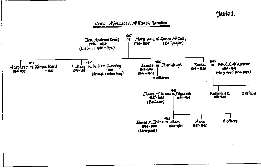 Craig, minister of Lisburn Presbyterian Church from 1782-1824. The family
