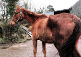 The horses, a chestnut mare (approximately 17hh), and a bay mare (approximately 16 ) were found suffering from worms, rain scald and mud fever when they were rescued from a farm on February 17.